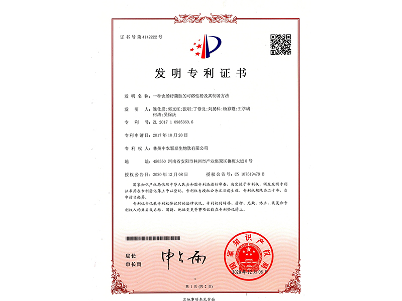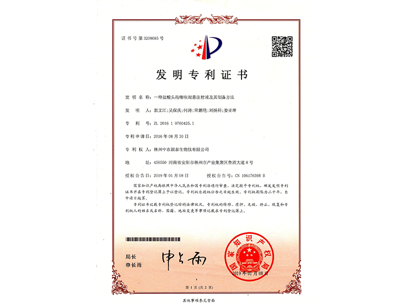 發(fā)明專利證書