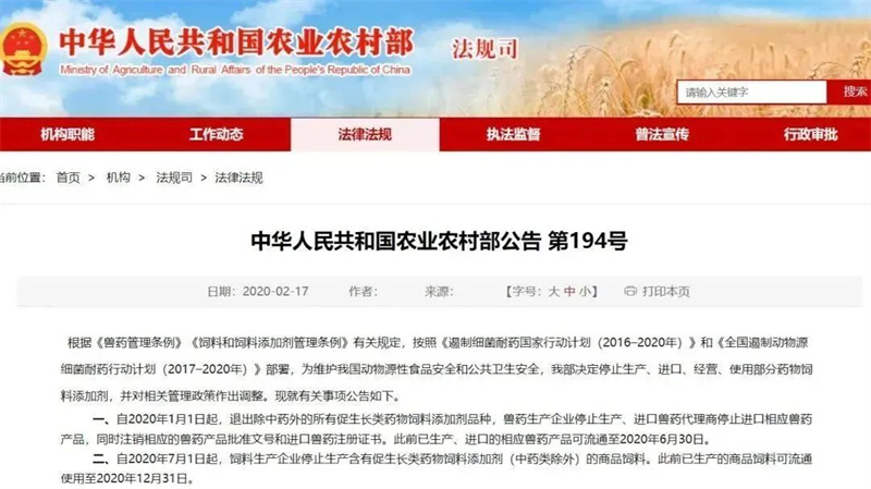 為了遏制微生物耐藥,自1986年開始,世界各國陸續在動物飼料和養殖生產中實行禁抗、減抗政策。我國農業農村部發布第194號公告:自2020年7月1日起,飼料生產企業停止生產含有促生長類藥物飼料添加劑(中藥類除外)的商品飼料。并于2021年制定了《全國獸用抗菌藥使用減量化行動方案(2021—2025年)》,行動方案指出:到2025年末,50%以上的規模養殖場實施養殖減抗。