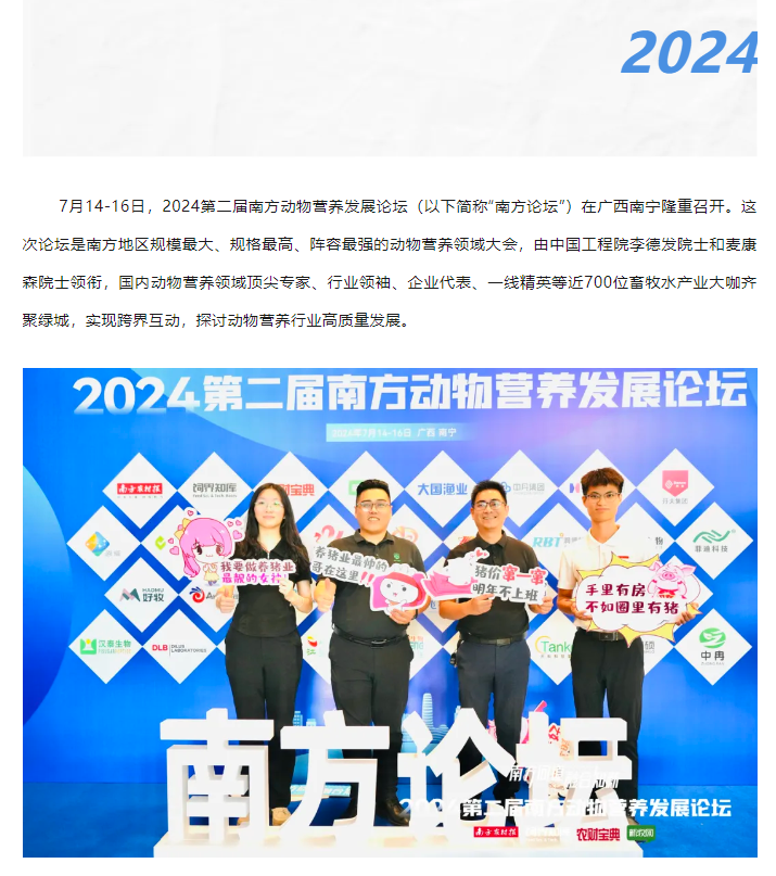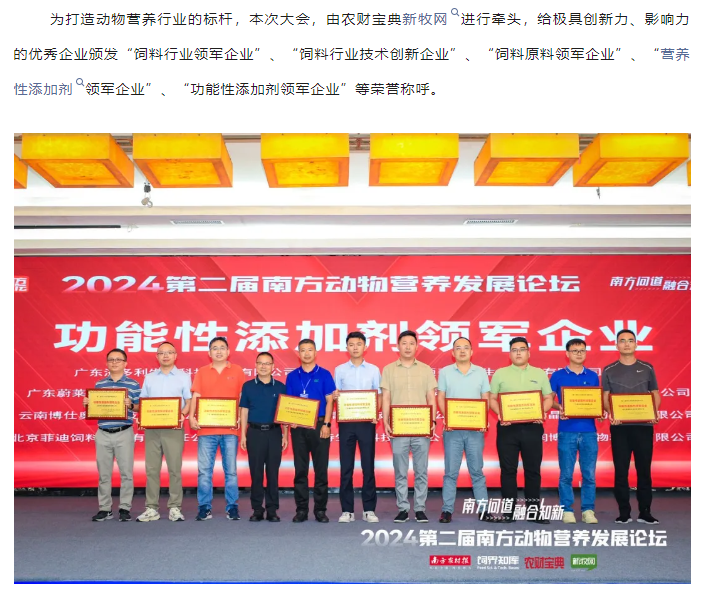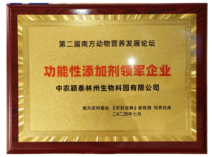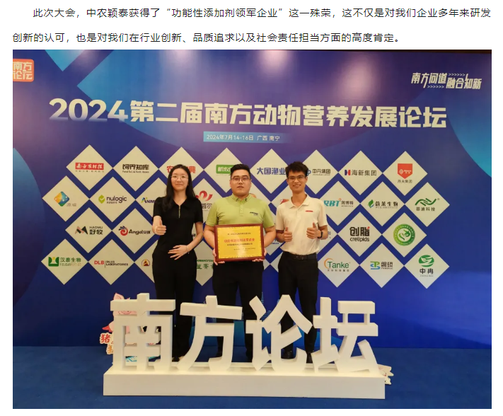 中農(nóng)穎泰獲評(píng)2024第二屆南方動(dòng)物營(yíng)養(yǎng)發(fā)展論壇“功能性添加劑領(lǐng)軍企業(yè)"